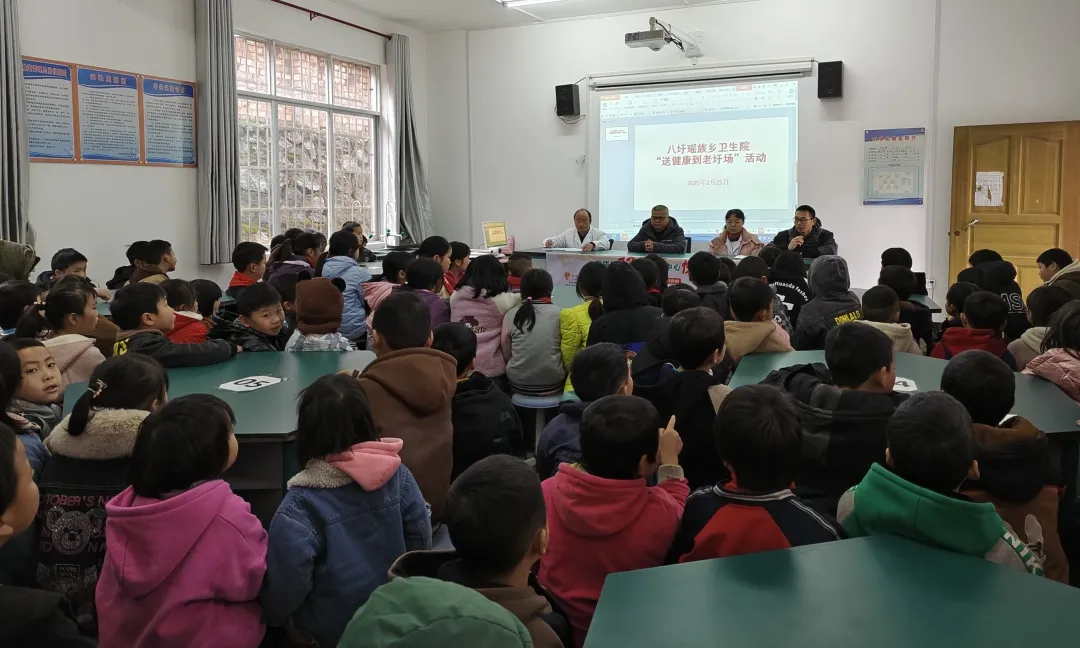 活动由八圩瑶族乡卫生院党支部书记、院长陆辉统筹部署,广西药检院选派的驻村第一书记林昊协调,老圩场村支书欧付华组织动员,形成“县-乡-村”三级联动机制。八圩瑶族乡卫生院的党建医共体单位河池市妇幼保健院派专家支援,卫生院党支部、村委干部、小城小学党支部全程参与,彰显“党建+健康”融合力量。“要让村民在家门口享受到优质医疗服务,更要让健康意识扎根乡村。”驻村第一书记林昊在活动启动仪式上表示。