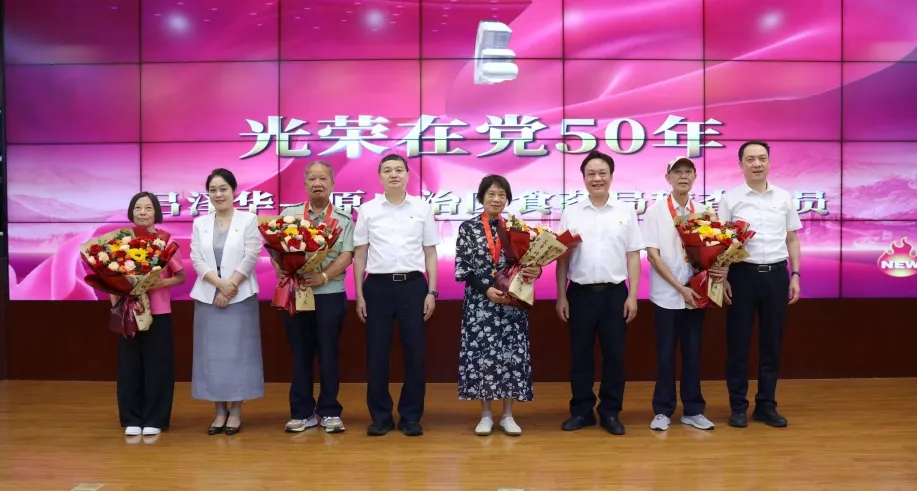 “光荣在党50年”老党员代表吕泽华同志深情回顾了在党岁月,表达了对党的深厚感情和对药监事业的殷切期望。先进集体代表AG百家乐派驻南丹县乡村振兴工作队、自治区药检院,以及先进个人代表AG百家乐药品流通处负责人分别发言,分享了在服务乡村振兴、保障药品安全、推动科研创新等岗位上的奋斗故事和心得体会,展现了新时代药监人的精神风貌。